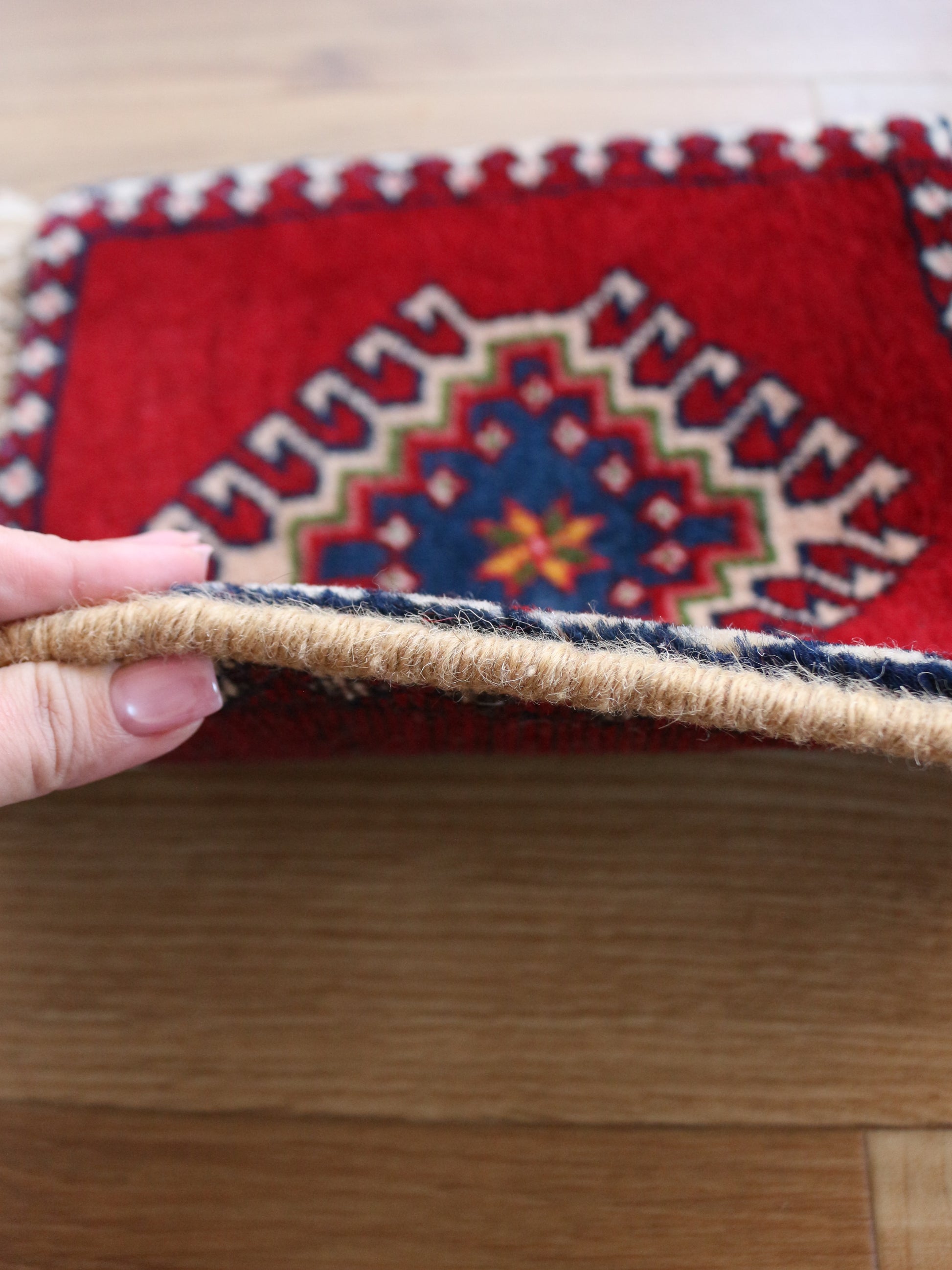 機械でなく人の手でおられているため、デザインの直線が曲がっていたり、網目の細やかさにバラつきがでて、歪んでいたり、曲がっていたりと1枚1枚に個性があります。不良品ではなく絨毯の味であると捉えていただければ幸いです。