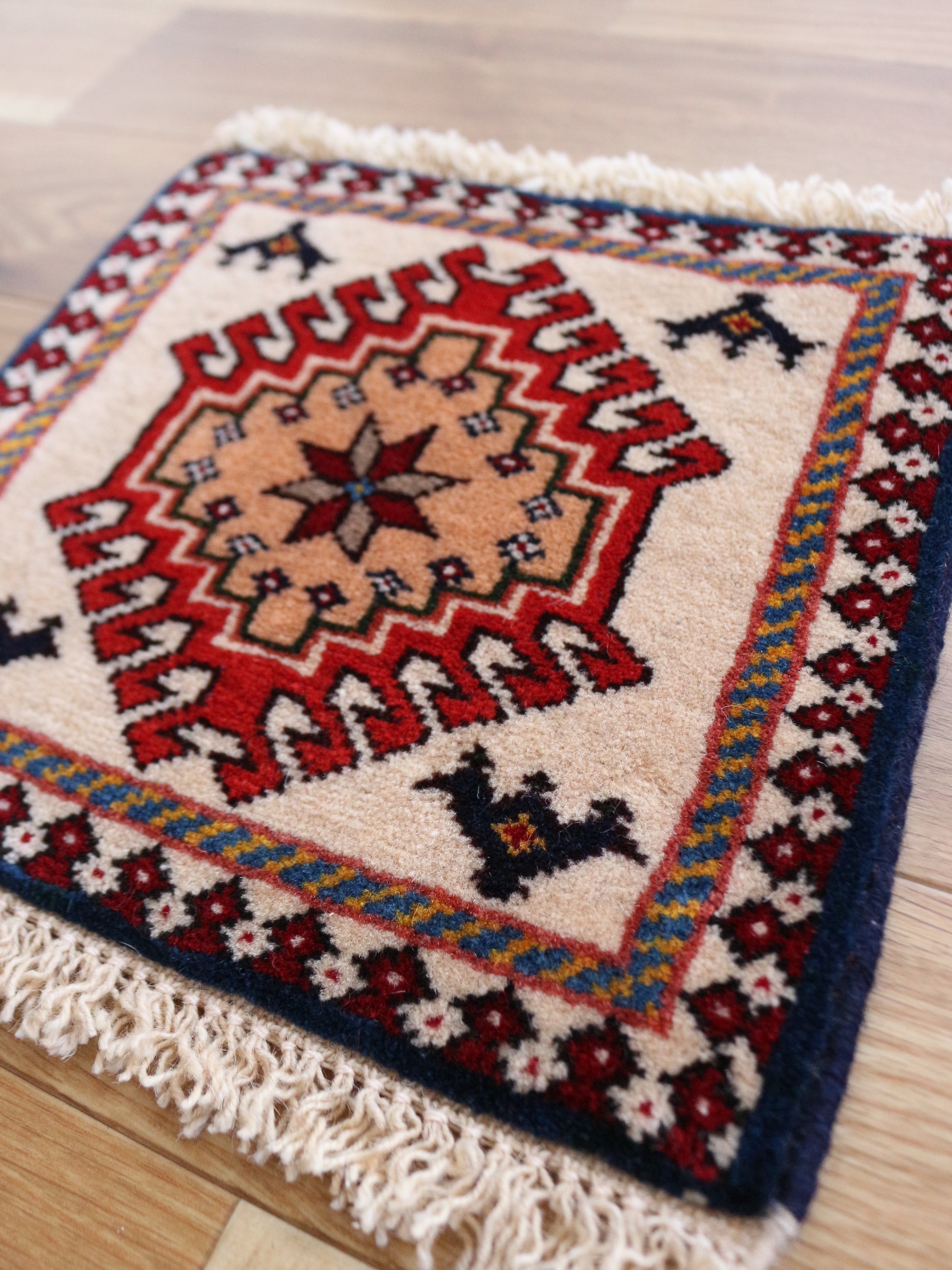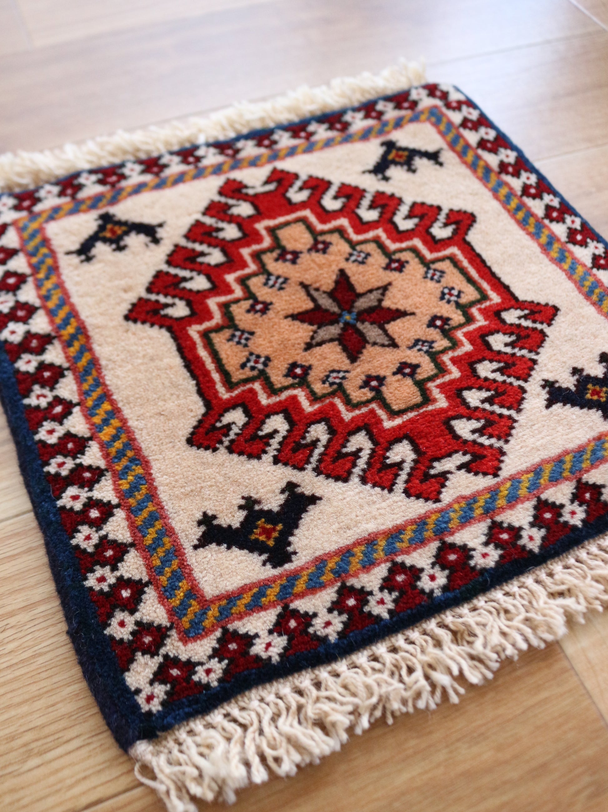 ヤラメは遊牧民が織る絨毯なので種類としては、トライバルラグになります、鮮やかな色合いが多く、幾何学模様が特徴で、メダリオンを中心に動物やお花も編まれます。ヤラメのウールは羊の首元のウールを使用していると言われ、ウールがしっとりしていて手触りがいいのが特徴です。是非お手元でなでなでしてあげてください♪産地はアリアバードのヤラメが総じて品質も良く、美しい織りが多いかと店主は感じております。もちろん他の産地でもヤラメの絨毯はとても美しいです。