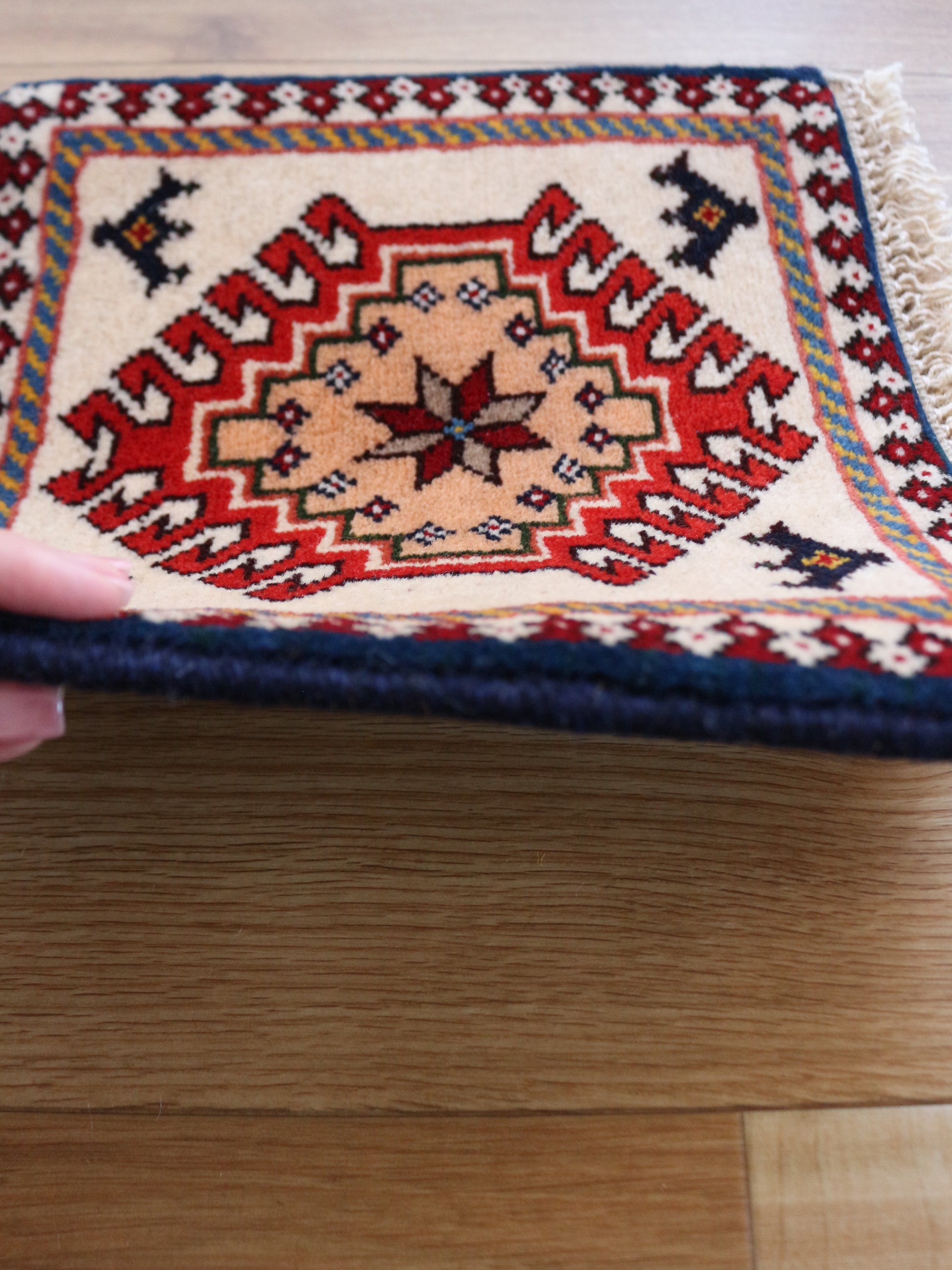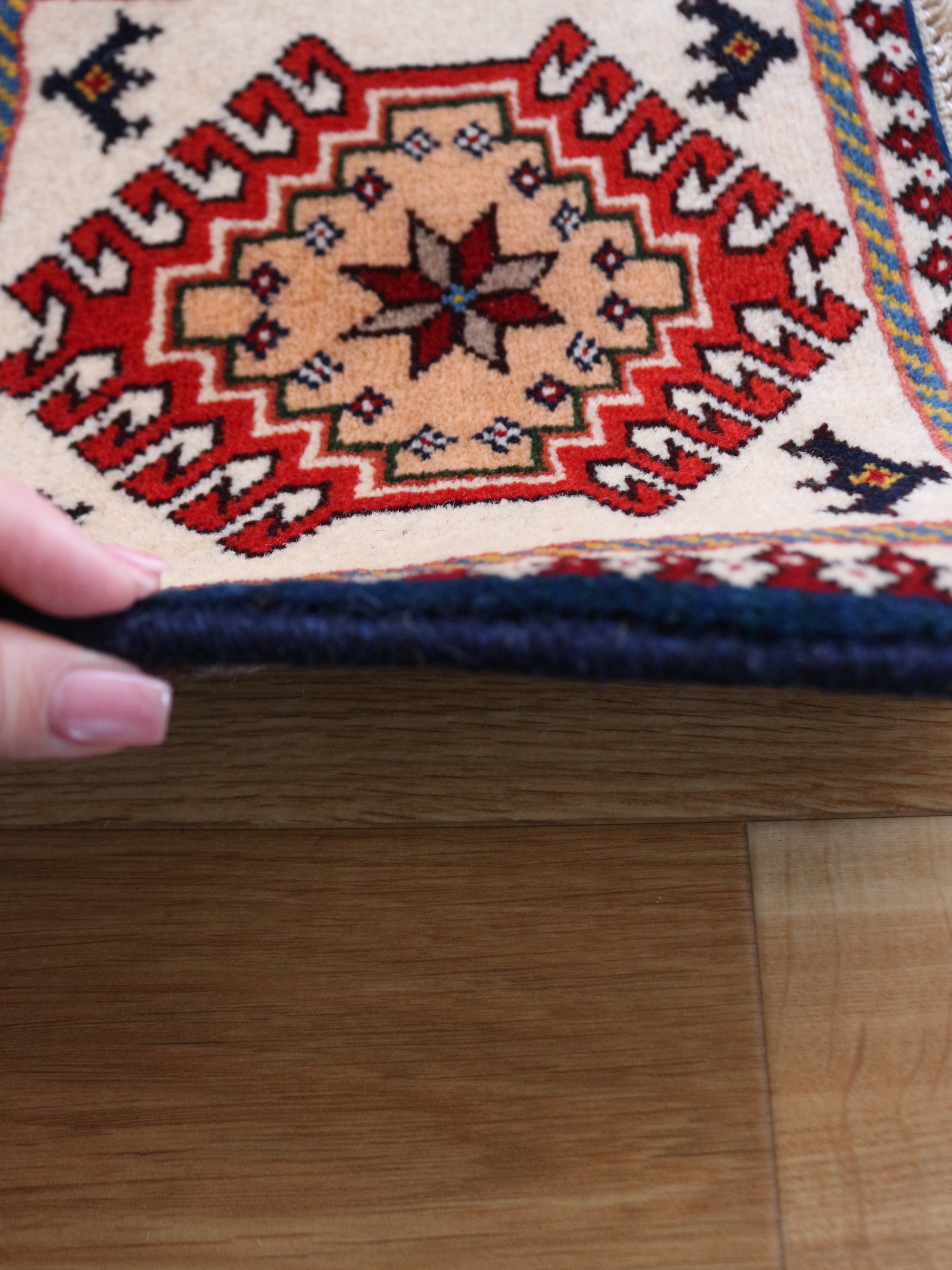 機械でなく人の手でおられているため、デザインの直線が曲がっていたり、網目の細やかさにバラつきがでて、歪んでいたり、曲がっていたりと1枚1枚に個性があります。不良品ではなく絨毯の味であると捉えていただければ幸いです。