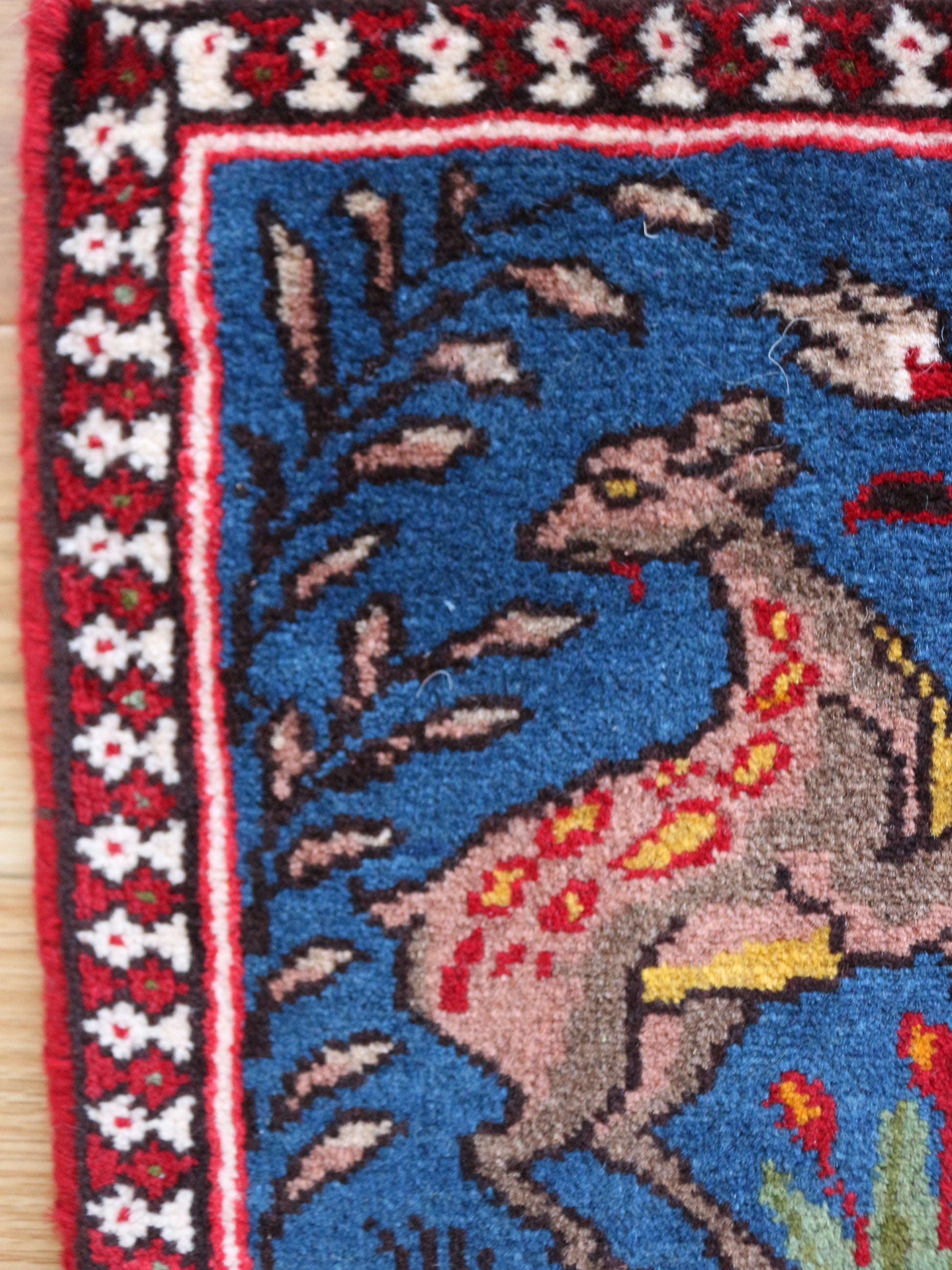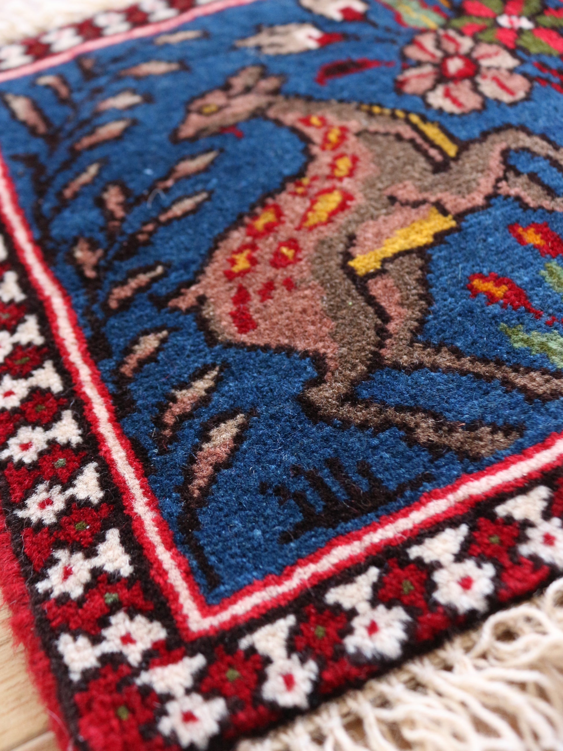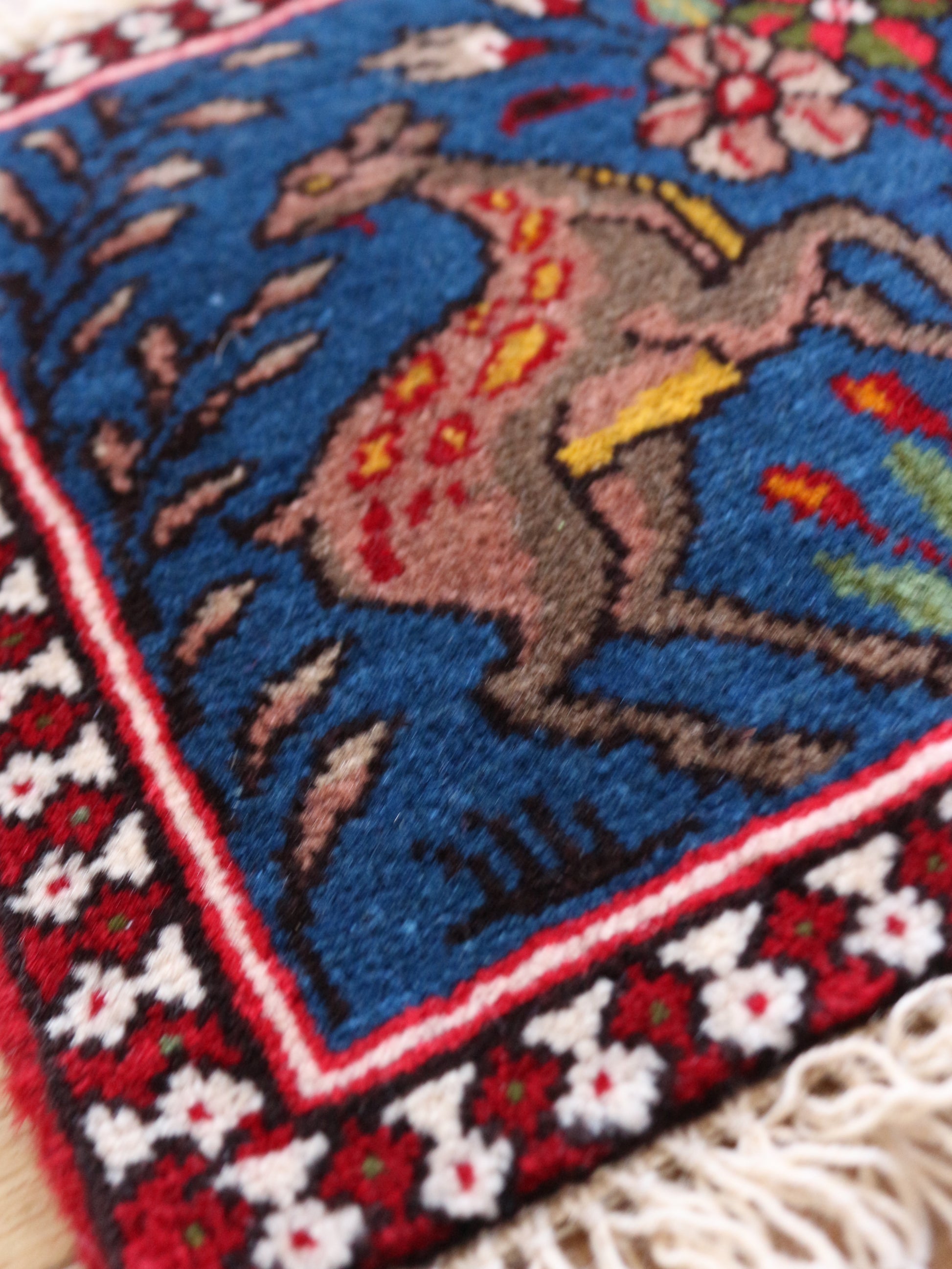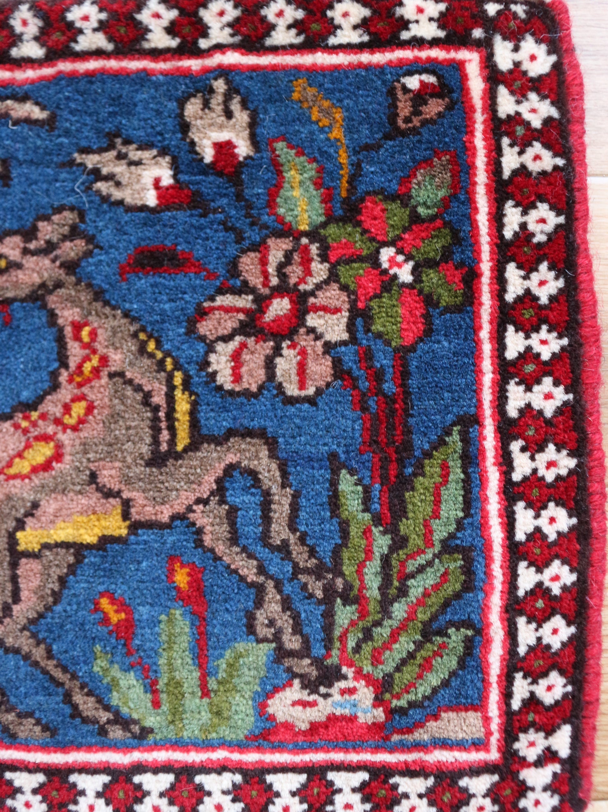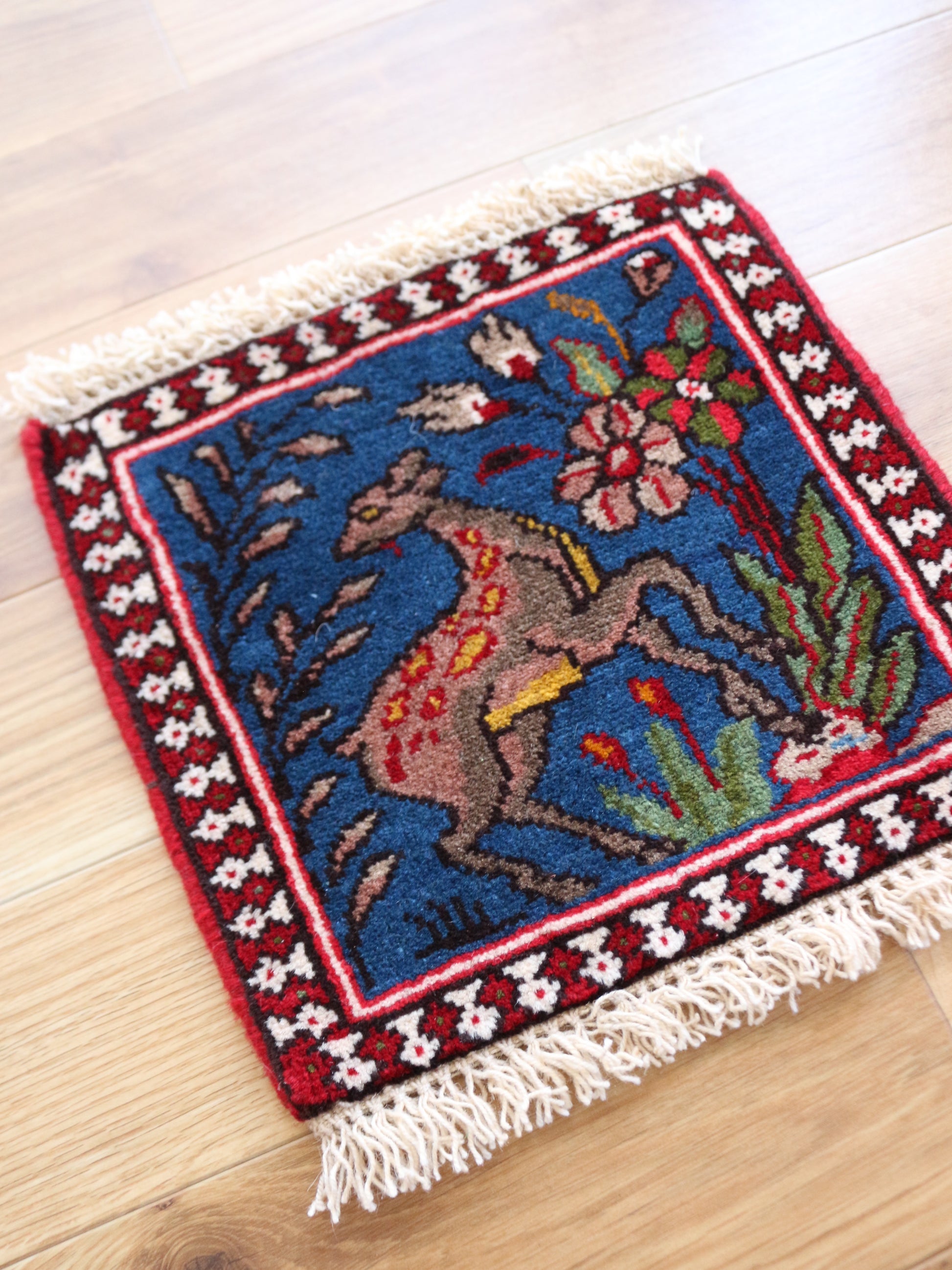 鹿ーーー!!!絵画のような鹿♪これはね、多分壁に飾る用ではないだろうか?ヤラメで時々出てくるアート型の絨毯。このサイズでは初めてかも♪40㎝×40㎝でも見たことないです。そして、なんと二枚も!!!なかなか出会えないのでめちゃくちゃお勧め!!!良かったらこの機会に是非♪