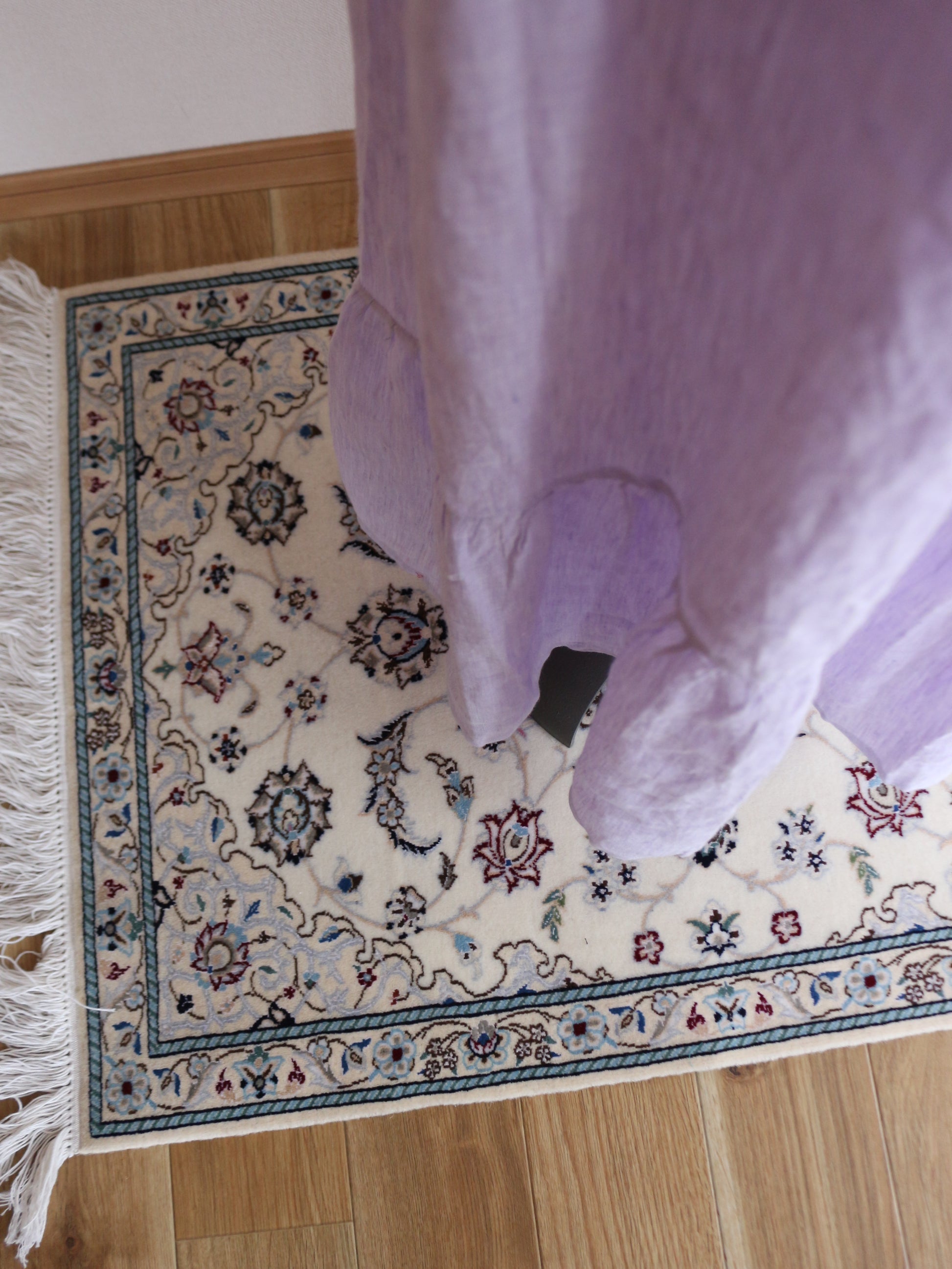 絨毯は羊毛をふんだんに使用しているため、独特の香りがします。羊毛は呼吸をすると言われる程、湿気を調整するので雨の日に匂う場合がございますが、敷いていくうちに徐々に落ち着きます。