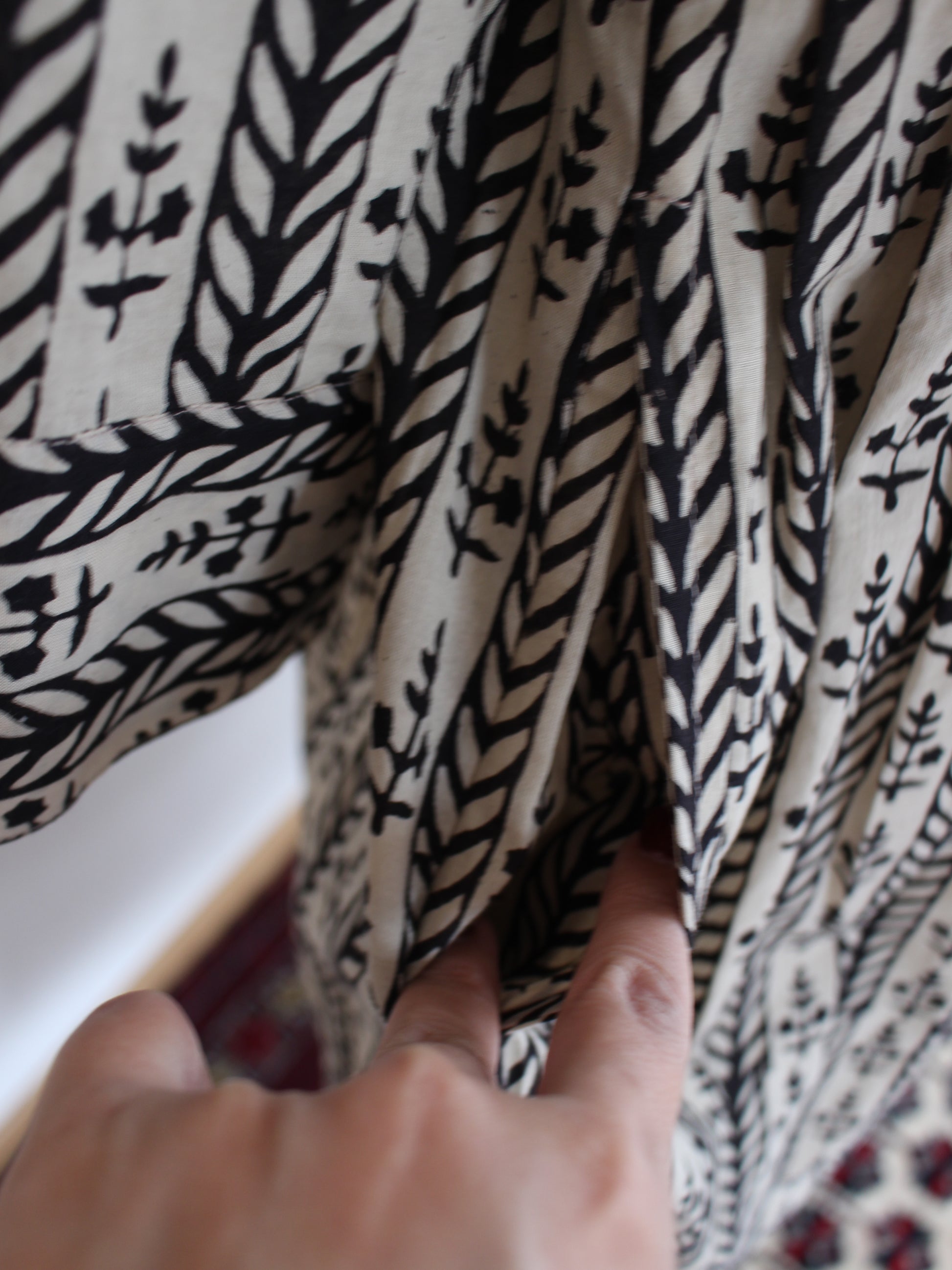 ただ、一番アレ?!っと思ったのが、当初は半袖をオーダーしたのに七分袖、笑!インドに指摘すると、次は大丈夫よ~っと、笑。もうね、これがインドです!!!ですが、長袖になったので秋冬でも行けるかなぁっと、今回、裏地をつけて秋冬のワンピースとして再登場!なんなら、春までも着まわせる七分丈ワンピースになりました♪
