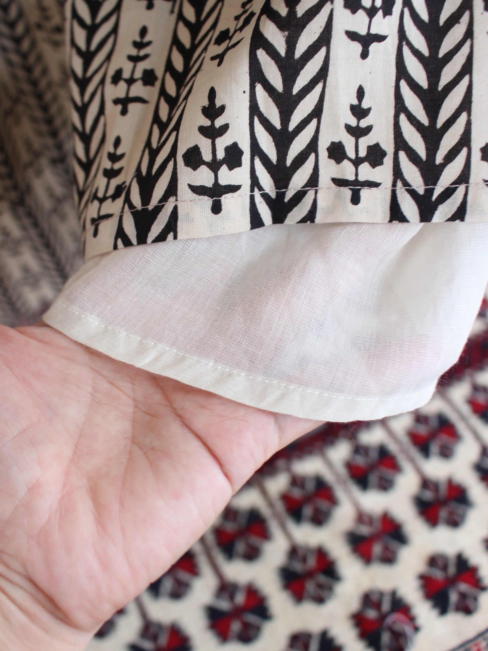 機械生産とは違いギャッベやブロックプリントワンピースは全て職人の手作りのため、制作過程において歪みや織りムラ、ズレ、カスレ、などが生じることがありますが、 それも味わいの一つとして見ていただけたらと思います。
