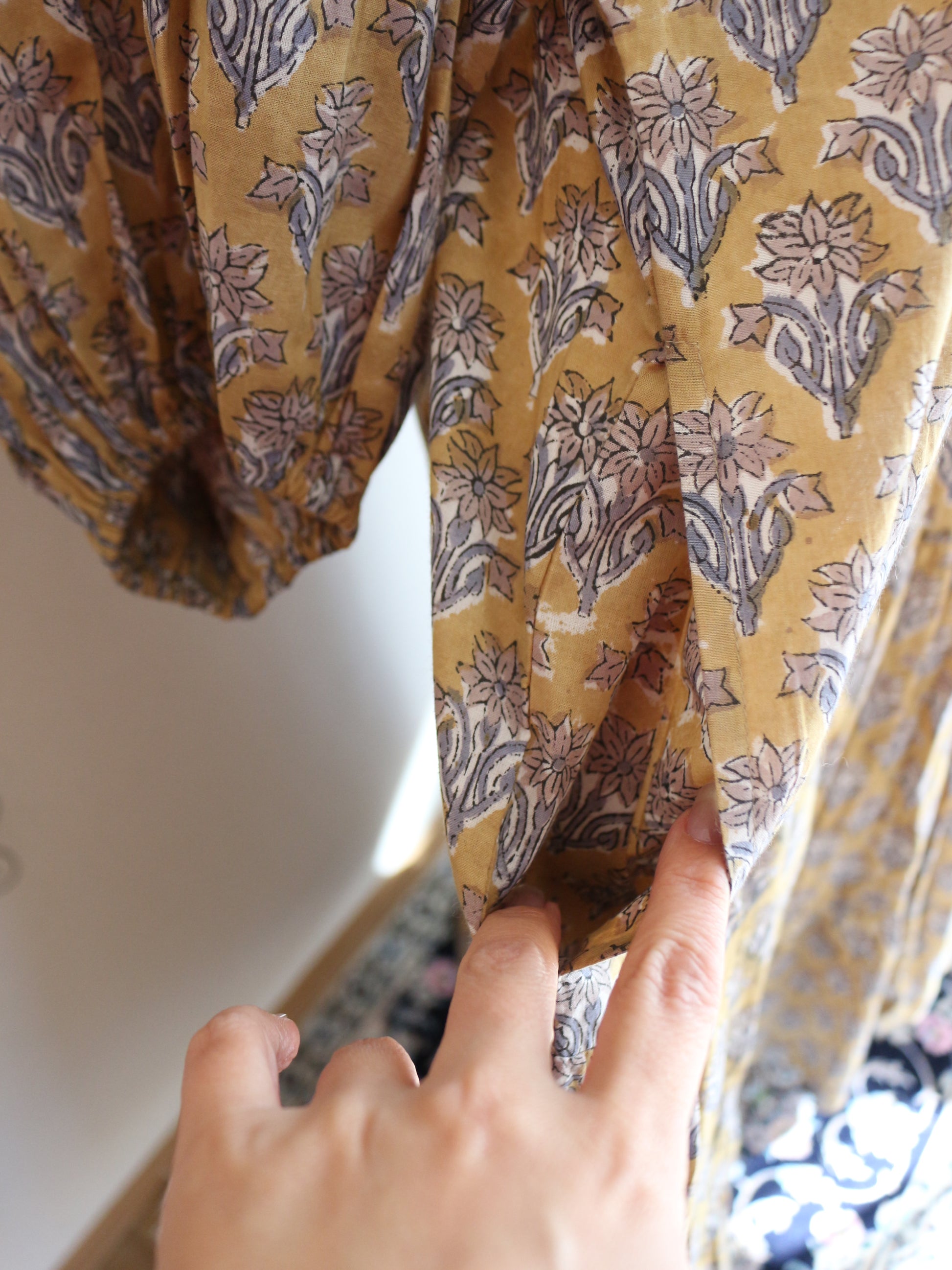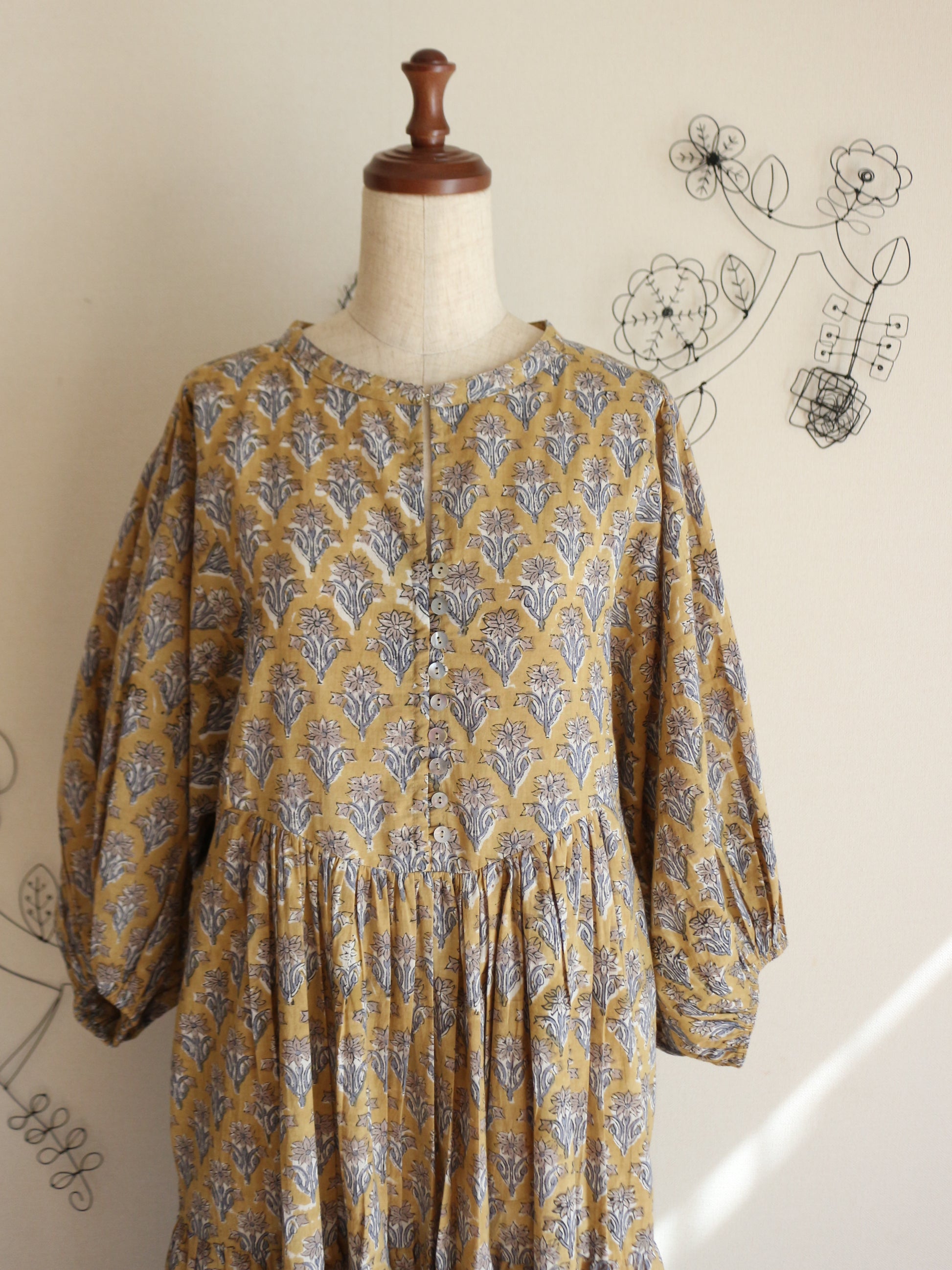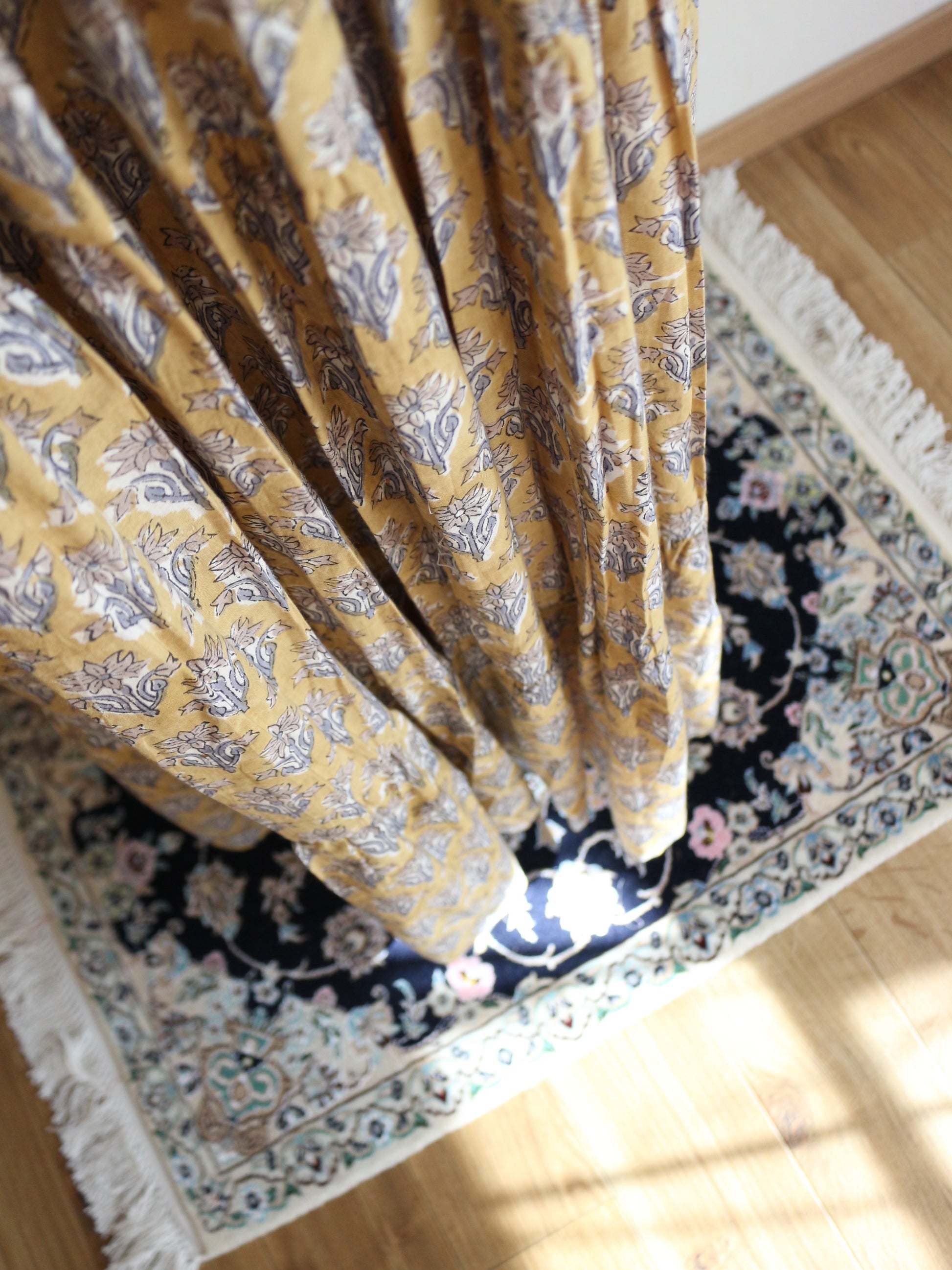 機械生産とは違いギャッベやブロックプリントワンピースは全て職人の手作りのため、制作過程において歪みや織りムラ、ズレ、カスレ、などが生じることがありますが、 それも味わいの一つとして見ていただけたらと思います。