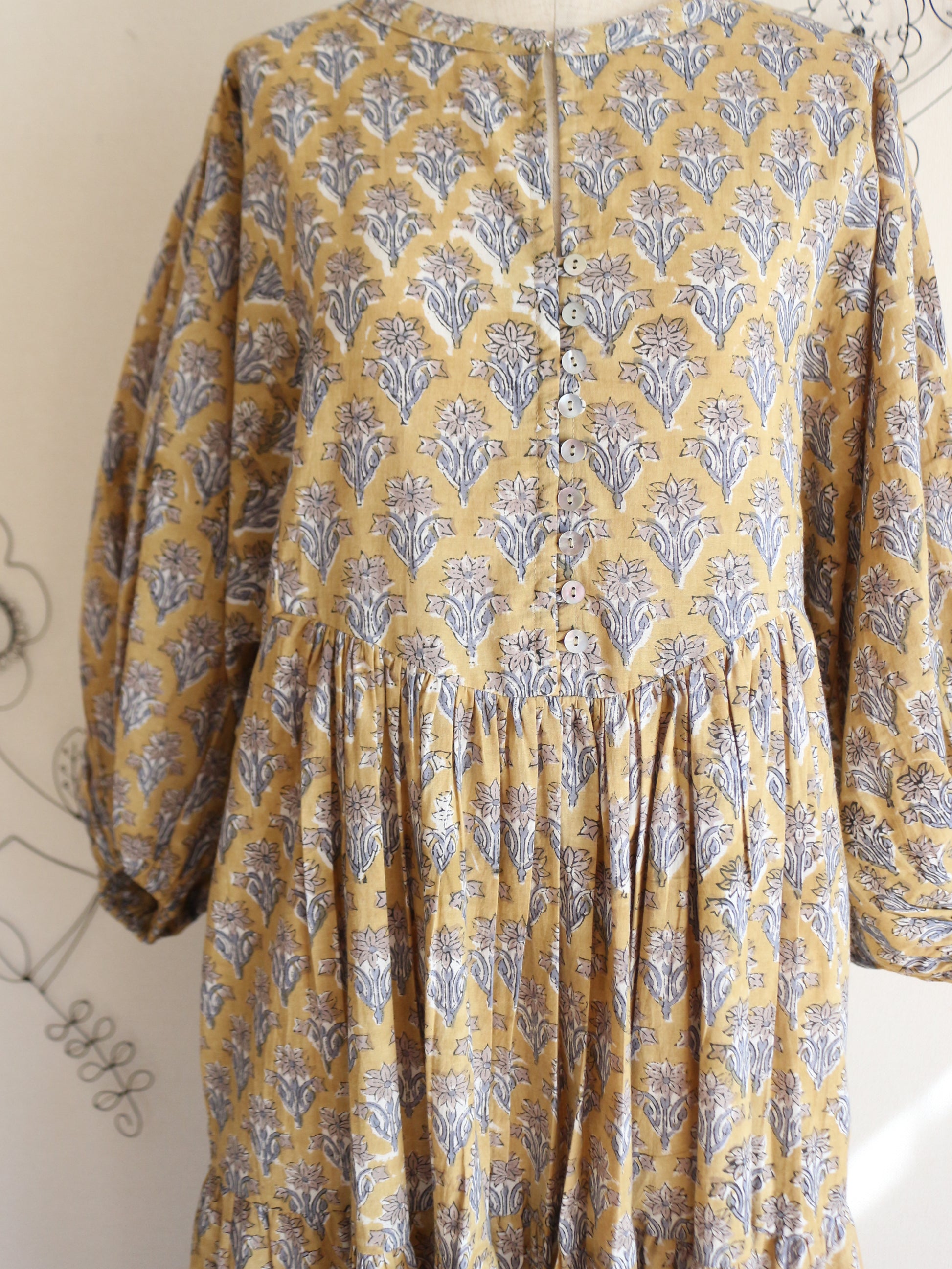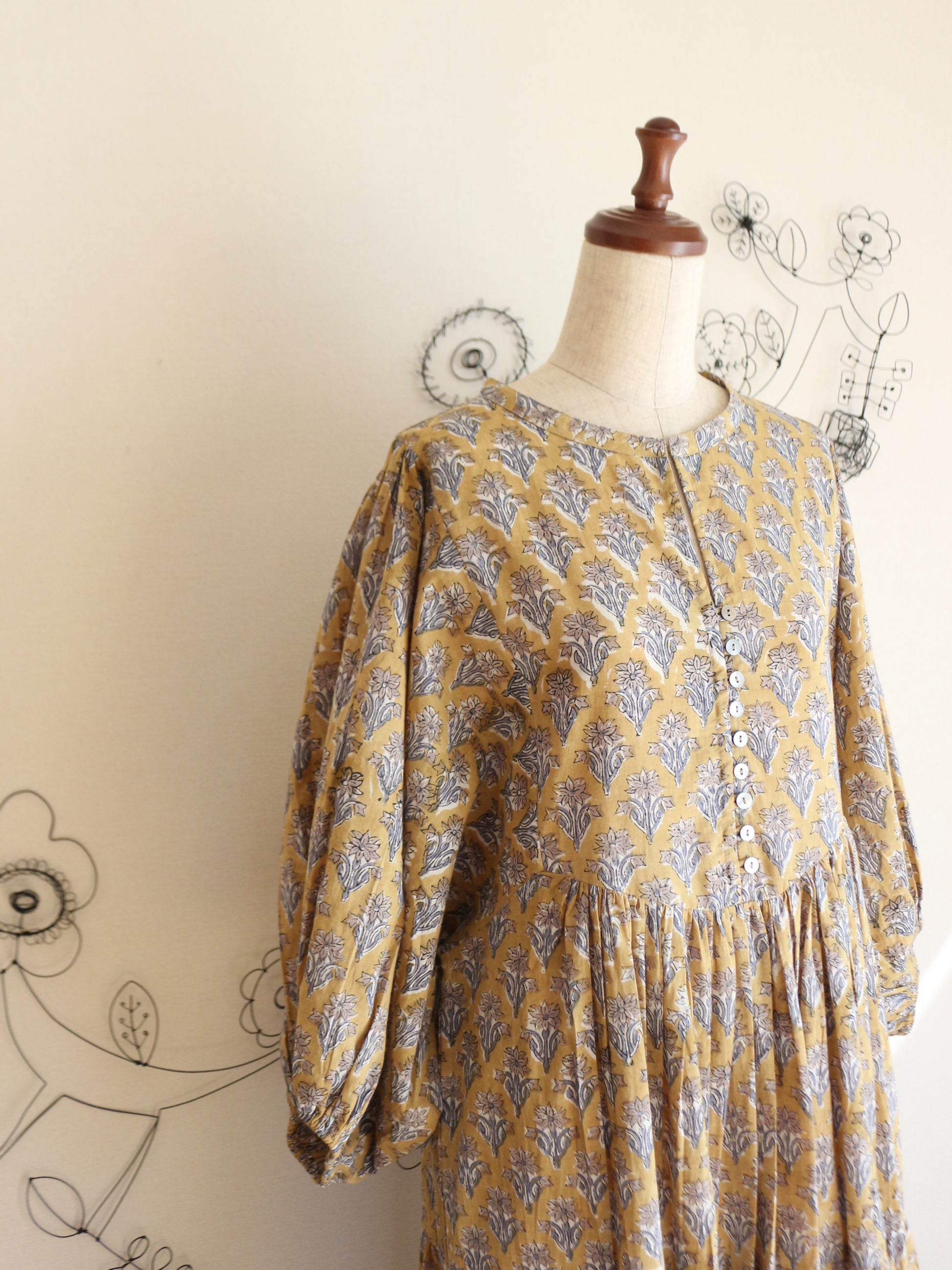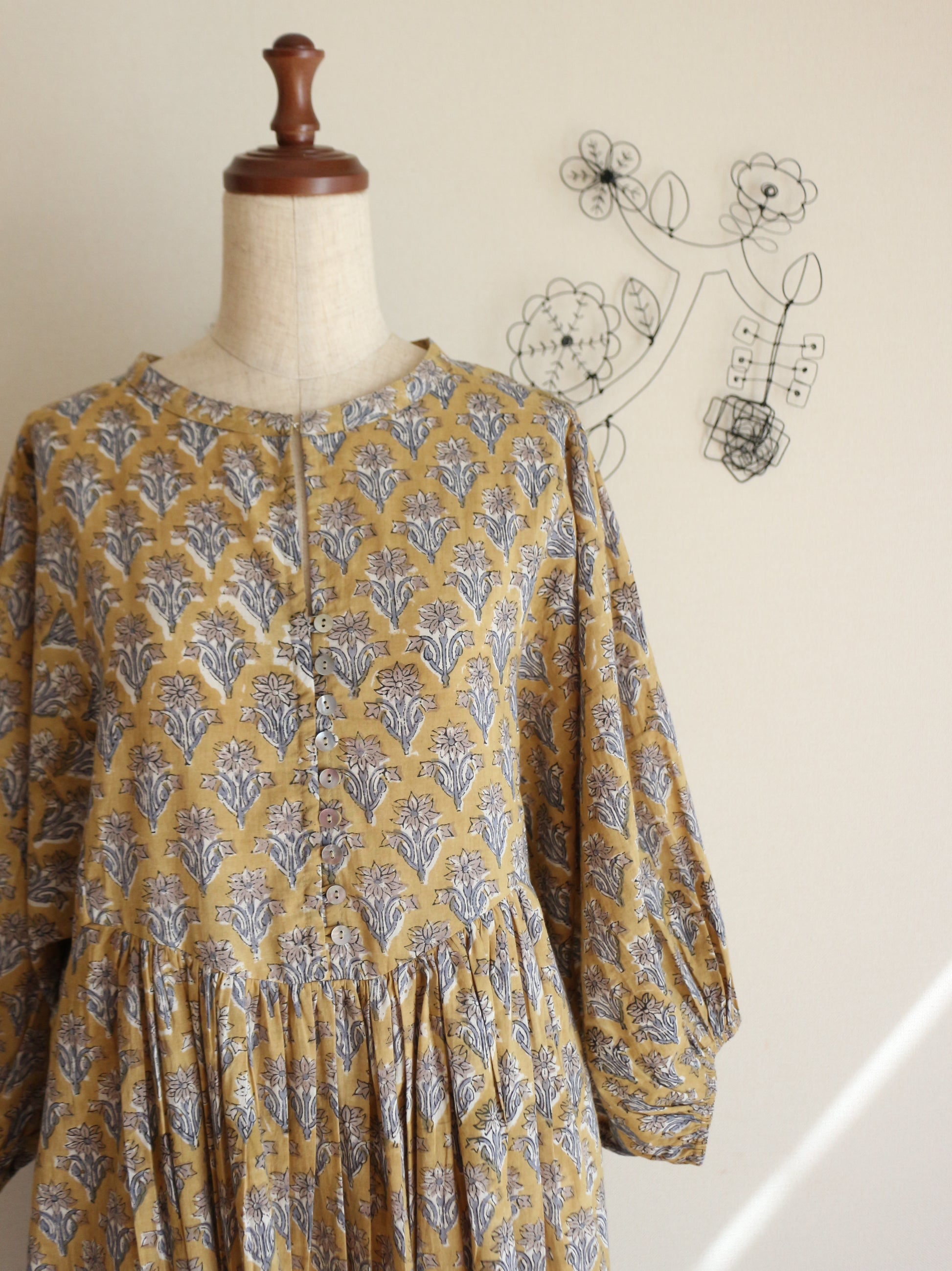 機械生産とは違いギャッベやブロックプリントワンピースは全て職人の手作りのため、制作過程において歪みや織りムラ、ズレ、カスレ、などが生じることがありますが、 それも味わいの一つとして見ていただけたらと思います。